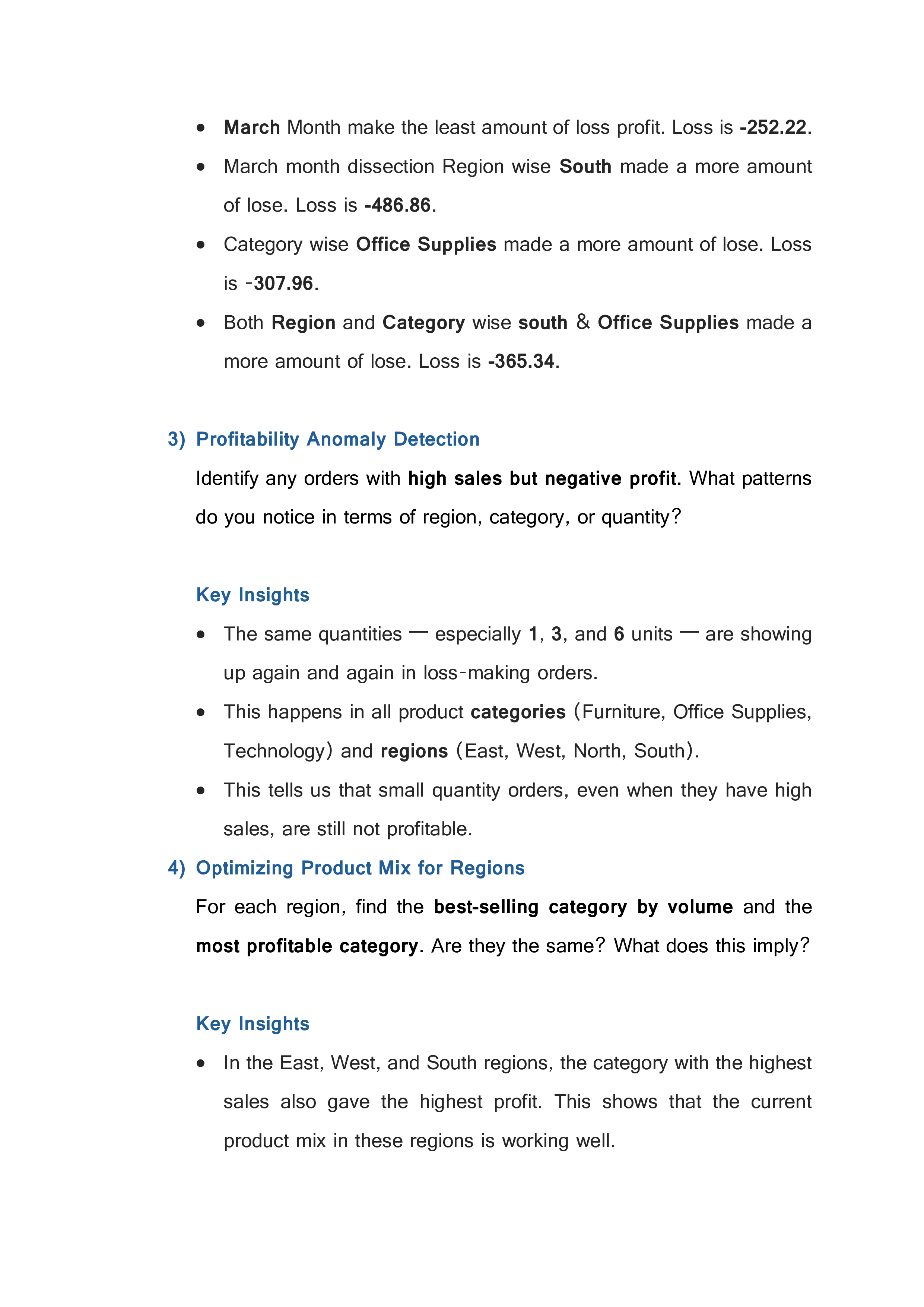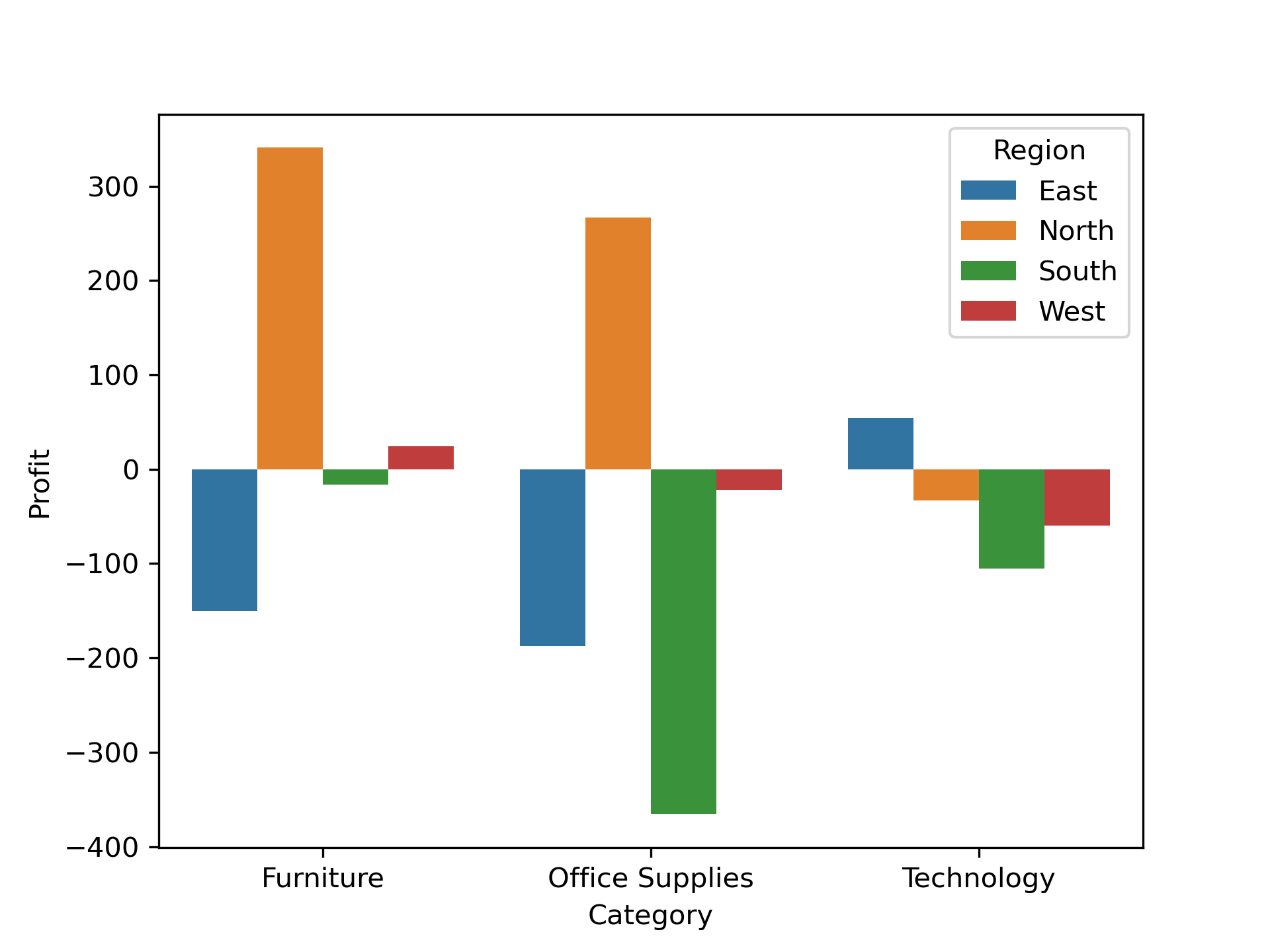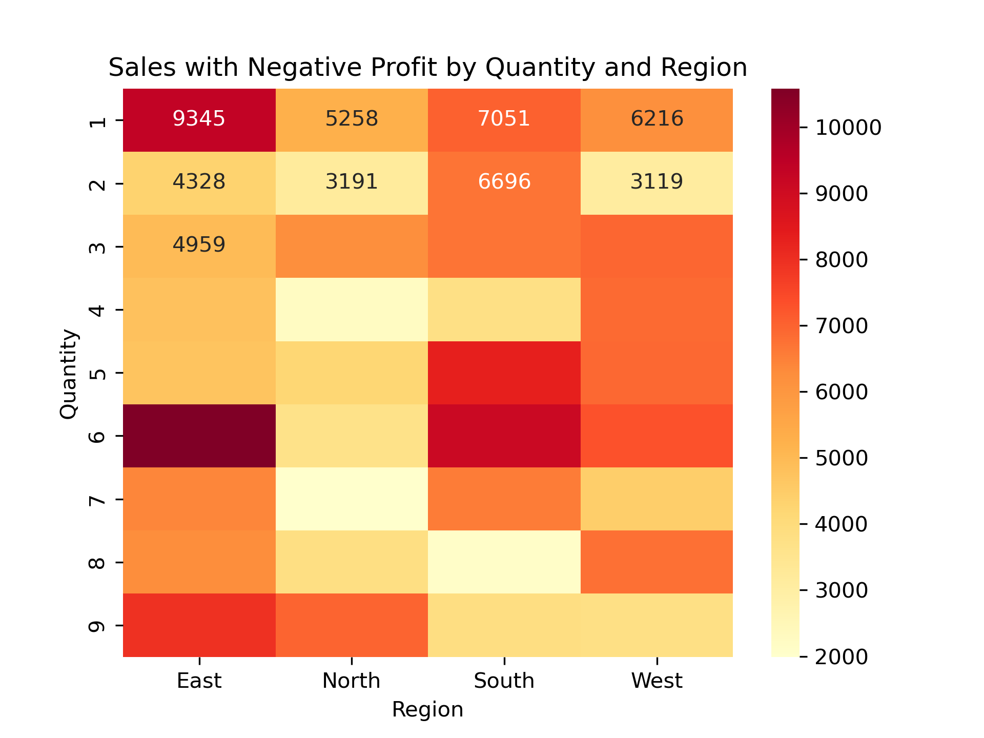 Region: Distribution is fairly even, but [East] has a slight edge.Category: [Furniture] appears more frequently.City: One or two cities like [South Megan] show up more than once, but no strong city dominance.df_loss = pd.DataFrame(df)