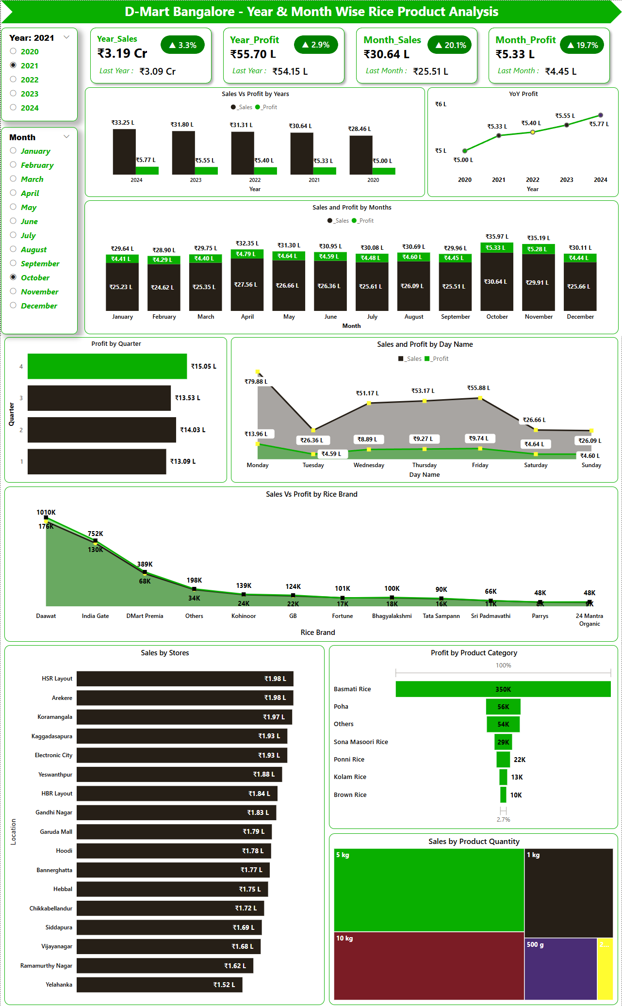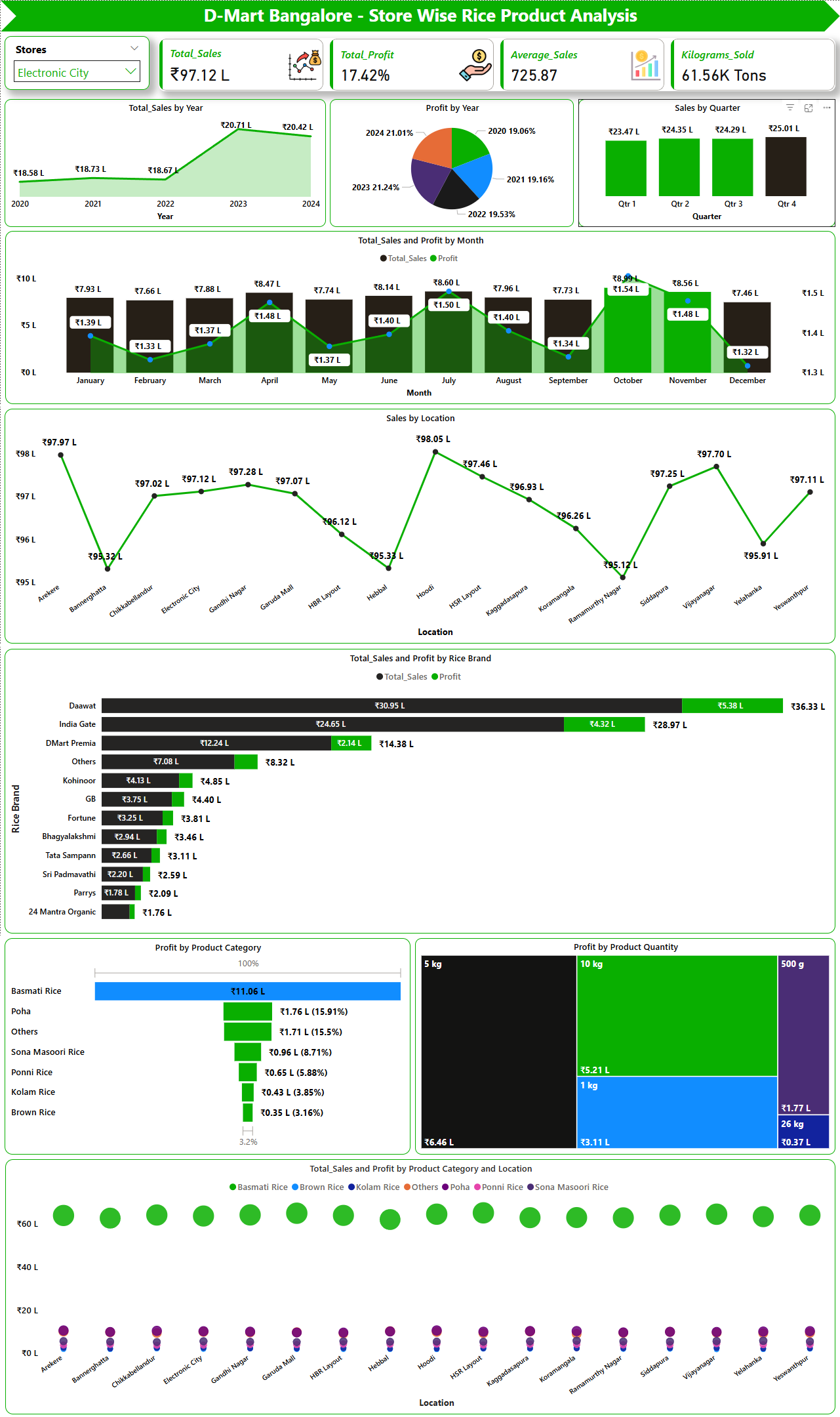 - Objective: To analyse the sales and profit performance of rice products across Bangalore D-Mart stores.
